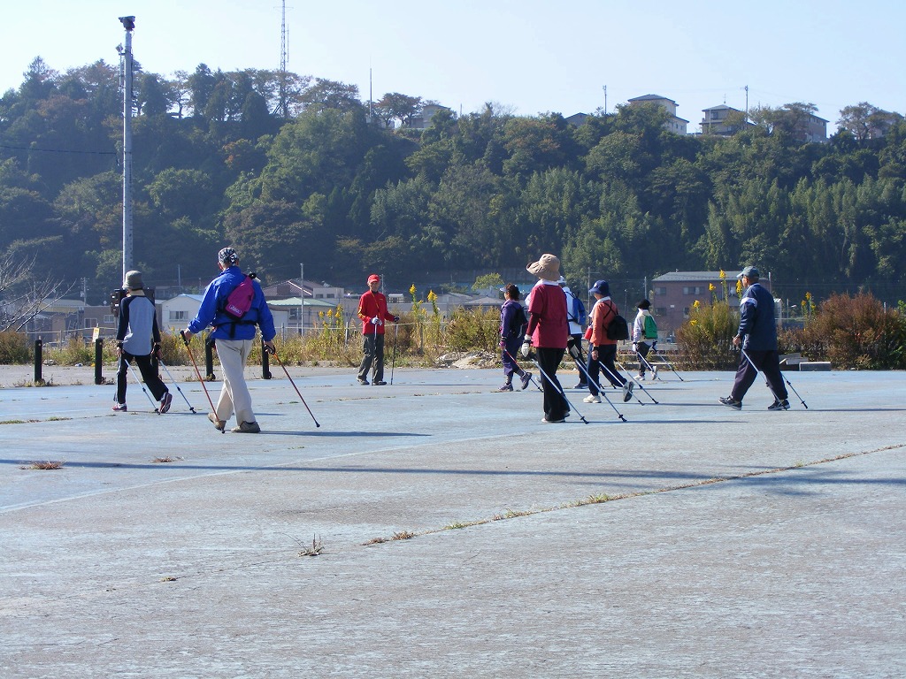 インストラクターよりノルディックウォーキングは、ヨーロッパスタイルが主流で、それをアレンジしたジャパニーズスタイルで実施しているという説明から始まり