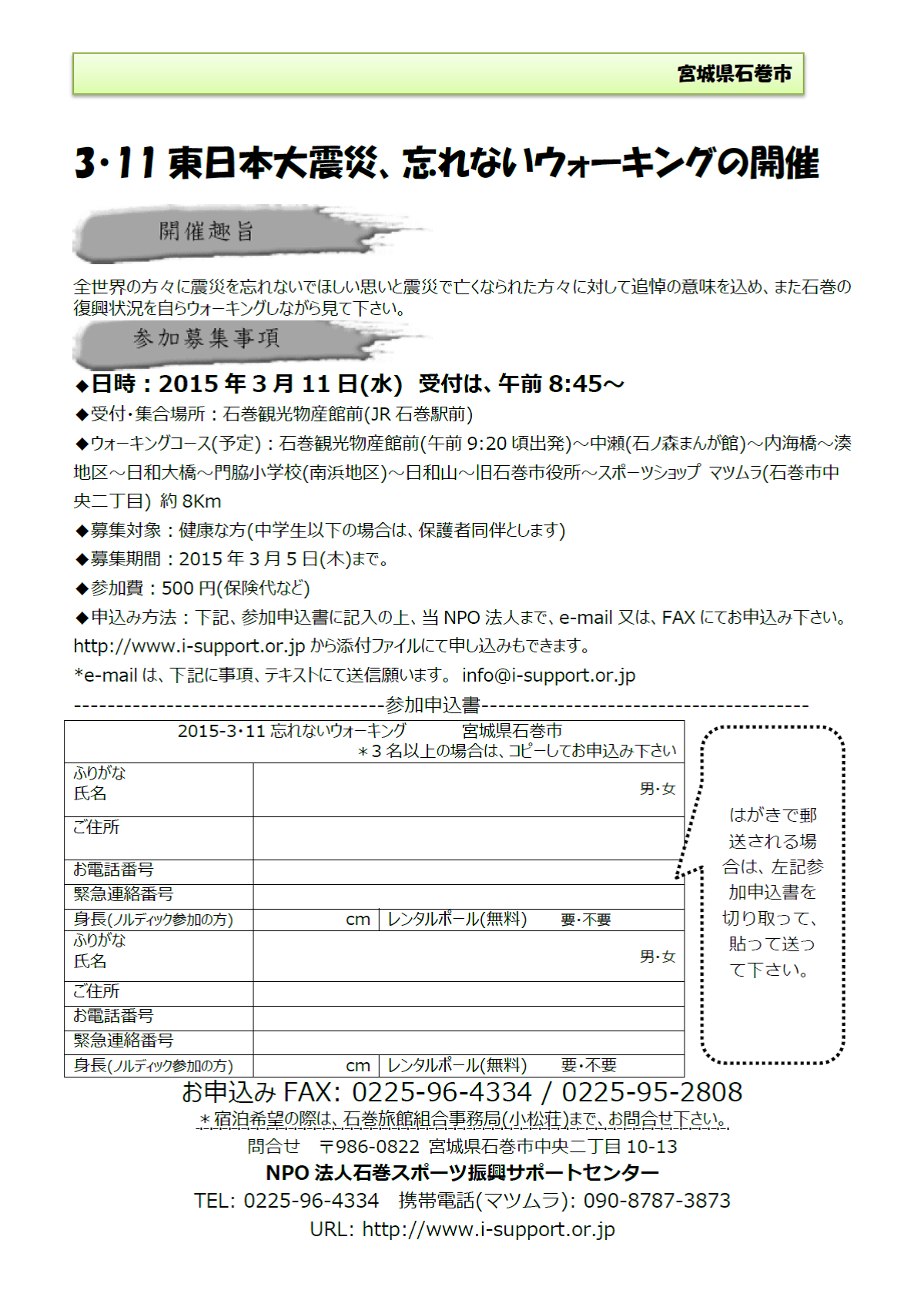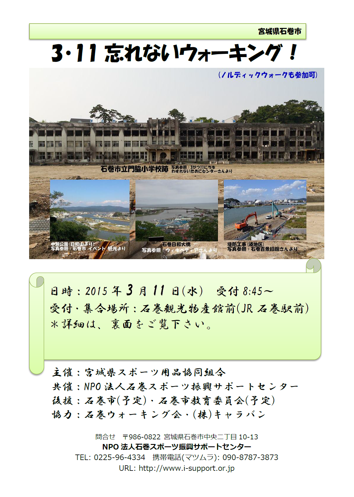 3・11東日本大震災、忘れないウォーキング参加者募集!